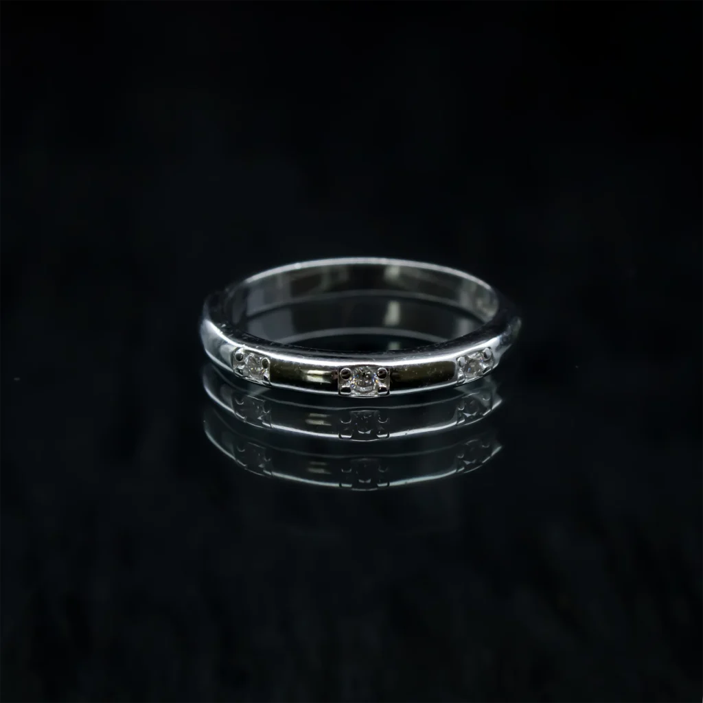 While moissanite and diamonds themselves are incredibly durable and resistant to most chemicals, their brilliance can still appear dull if residue from perfumes, soaps, or cleaning agents builds up on the surface. This film blocks light reflection making the stone look cloudy instead of sparkling.
